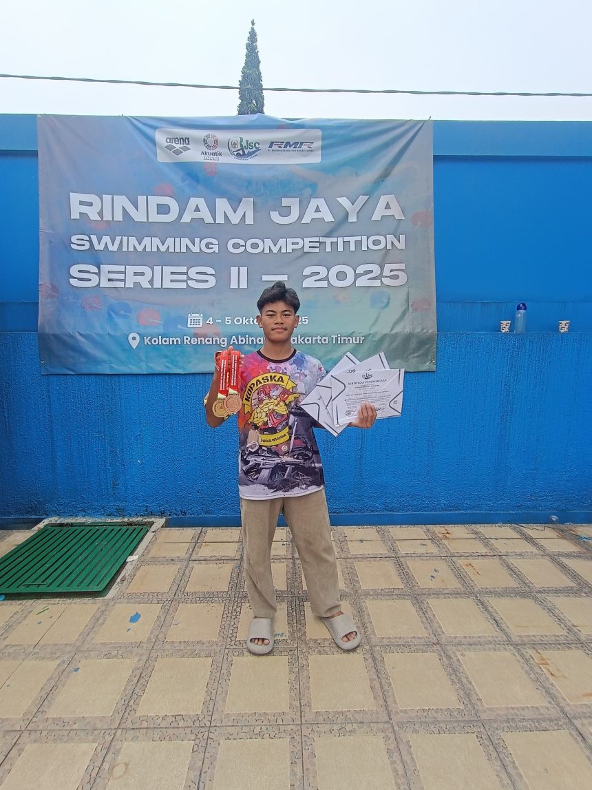 Bogor, Pripos.id – Salah satu siswa SMA 1 Jonggol, Kabupaten Bogor atau yang di kenal dengan nama SMURAY yang bernama Agnis Dwi Navy Perwira yang tercatat di SMURAY sebagai siswa X.1 mengukir prestasi di kejuaraan Renang “Rindam Jaya Swimming Competition Series II – 2025” yang di gelar pada 4 – 5 Oktober 2025 dan berlangsung di Kolam Renang Abinaya, Jakarta Timur.